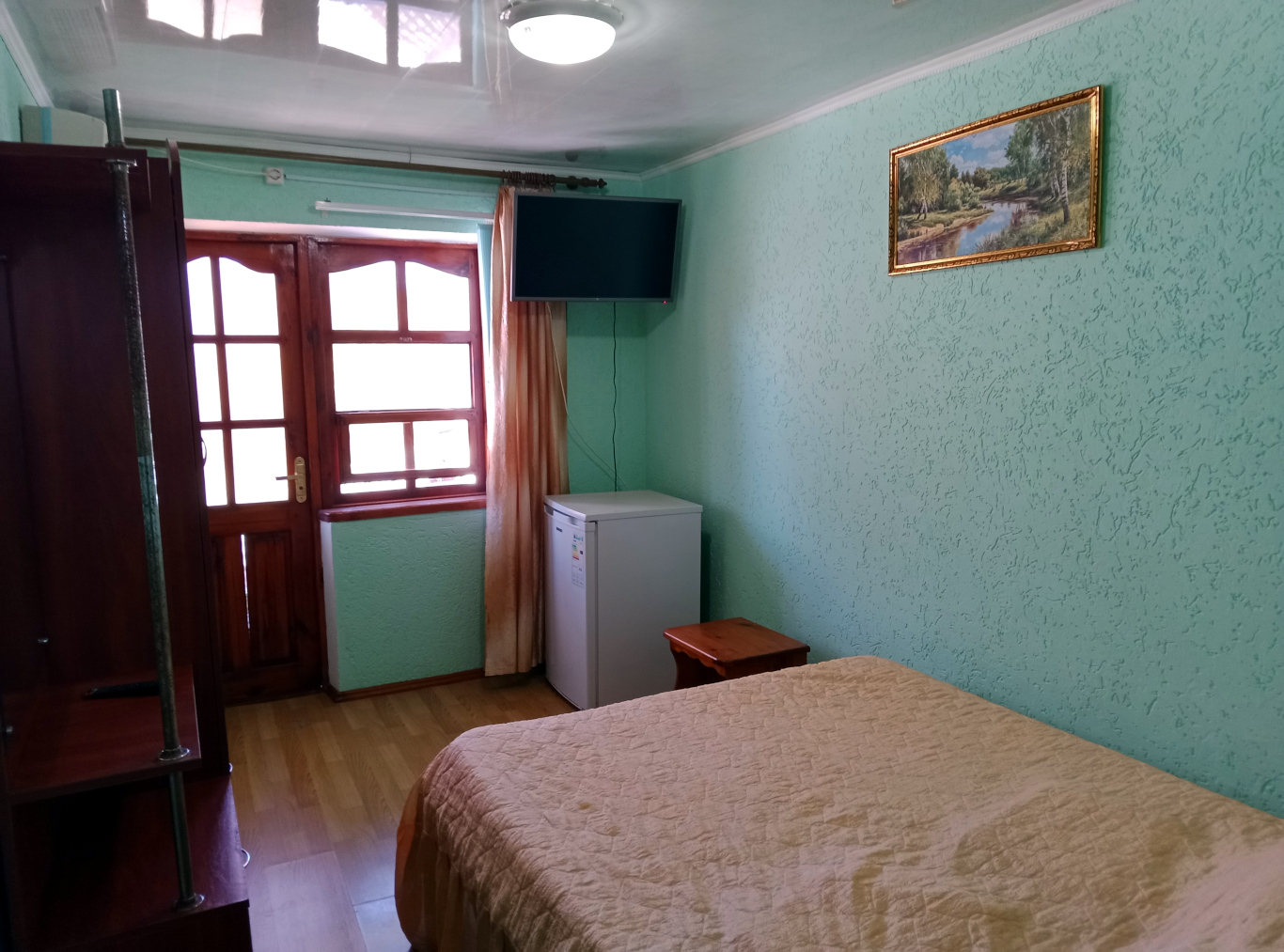 Мебель: двуспальная кровать (1400х1900), шкаф с зеркалом, прикроватная тумбочка, коврики Удобства: кондиционер, телевизор, кабельное ТВ, холодильник, обеденный стол со стульями (установлены на площадке возле каждой комнаты, можно принимать пищу на свежем воздухе) Ванная комната (в каждом номере): душ, унитаз, умывальник, шкафчик навесной с зеркалом, каждому гостю выдается полотенце (размер 80х50 см). Вода холодная-горячая постоянно.