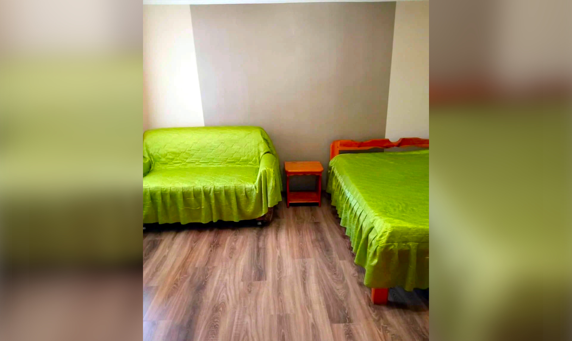 Спальных мест: 4-5 Комнат в домике: 2 (одна спальня и одна комната проходная) + кухня + ванная комната Этаж: 1 Санузел+Душ: в доме (совмещены)