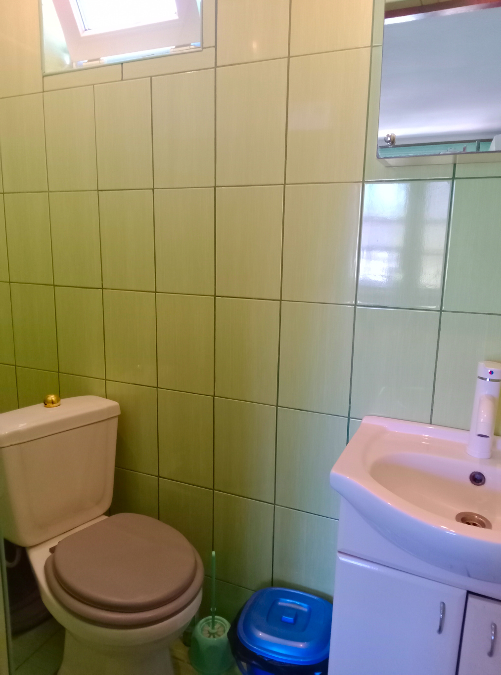 Мебель: Одна односпальная кровать (800х1900) и одна двуспальная кровать (1400х1900), шкаф с зеркалом, прикроватная тумбочка, коврики. Удобства: Кондиционер, телевизор, кабельное ТВ, холодильник, обеденный стол со стульями (на площадке возле каждой комнаты, можно принимать пищу на свежем воздухе) Ванная комната (в каждом номере): душ, унитаз, умывальник, шкафчик навесной с зеркалом, каждому гостю выдается полотенце (размер 80х50 см). Вода холодная-горячая постоянно.