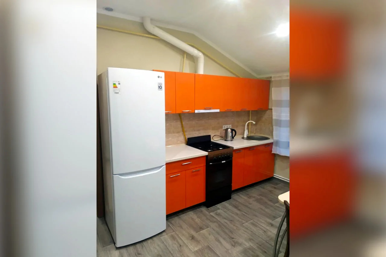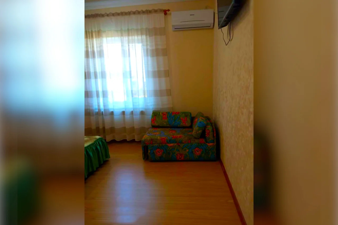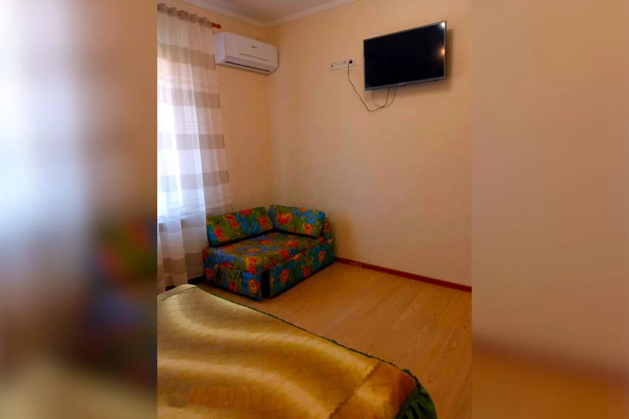 Мебель и Техника: В спальне двуспальная кровать (1600х2000), комод, шкаф с зеркалом, две прикроватные тумбочки, коврики, телевизор, кабельное ТВ, небольшой детский диванчик. Постельное белье, полотенца на каждого гостя по два (одно 140х80 и одно 90х50), пледы на каждого гостя. Кондиционер. На окне жалюзи. Кухня: На кухне - кухонный гарнитур, плита газовая четырехконфорочная с духовкой (над плитой установлена вытяжка), холодильник двухкамерный с морозильной камерой внизу LD, стол, стулья, микроволновая печь, чайник, диван 1400х2000. Посуда в наличии для приема и приготовления пищи. На окне жалюзи. Ванная комната: В Ванной комнате - ванна, умывальник, навесной шкафчик с зеркалом, унитаз, стиральная машинка, фен, утюг, гладильная доска, шушилка для белья. Прихожая: Прихожая - шкаф. В квартире интернет. Кабельное телевиденье. Вода холодная-горячая постоянно.